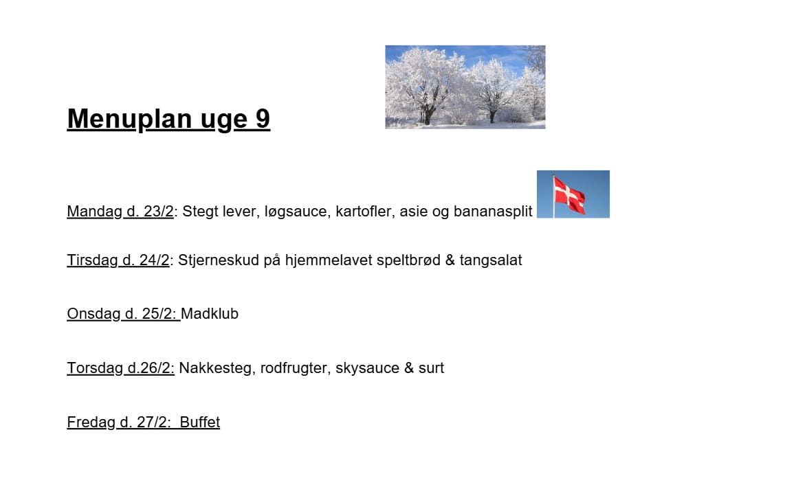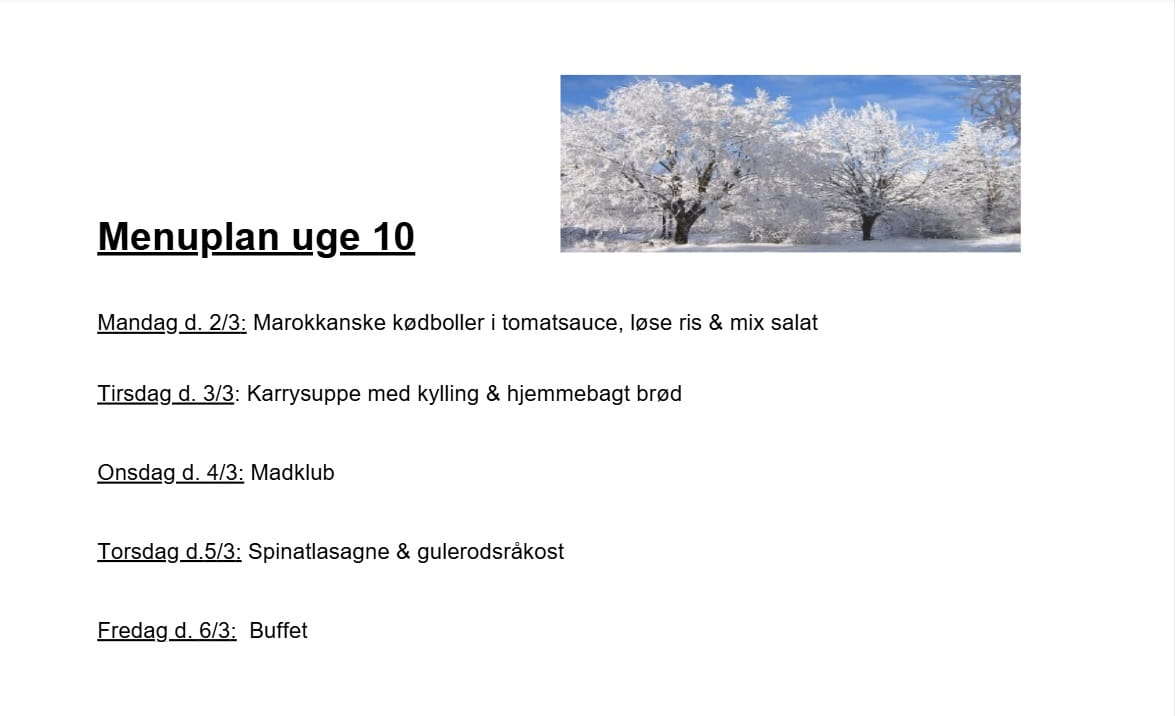 Herunder Ses menuplanen for de kommende uger: